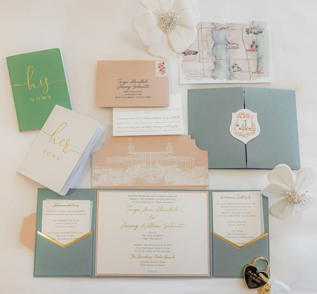 Custom Wedding Invitations for a timeless and classic Pastel wedding at The Breakers Hotel